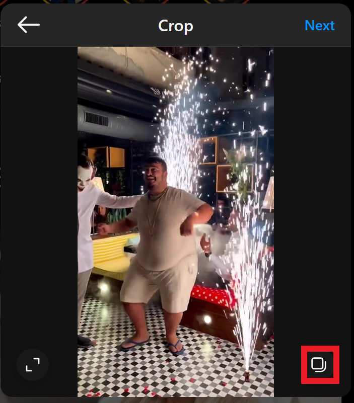 1) When you're creating your post, upload 1 video or image. Then, click on the carousel icon on the bottom right.